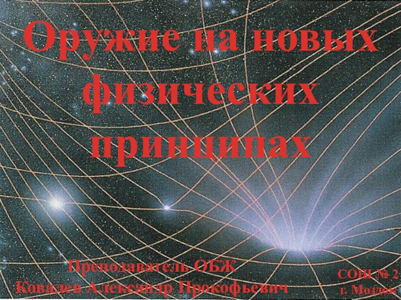 Оружие на новых физических принципах - это средства вооруженной борьбы, действие которых основывается на использовании направленных высокоэнергетических излучений и полей, нейтральных или заряженных частиц, а также на других нетрадиционных способах полного или частичного поражения живой силы, боевой техники, объектов или территории противника.