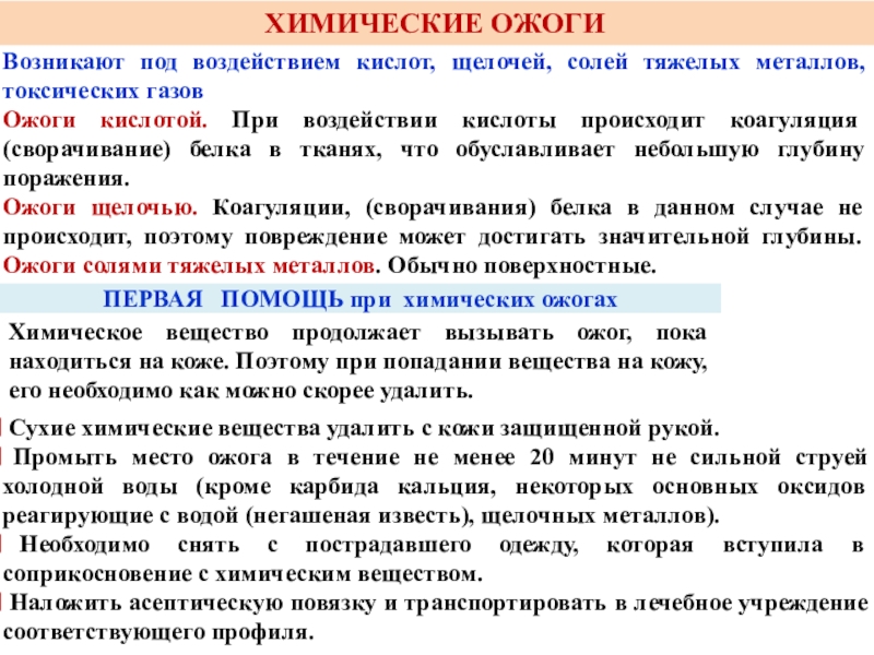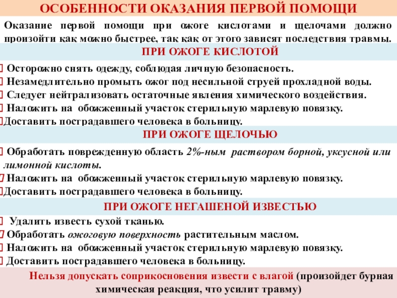 ПЕРВАЯ ПОМОЩЬ при химических ожогах