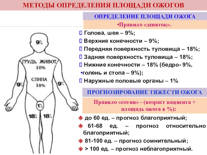 Правило «сотни» - (возраст пациента + площадь ожога в %):