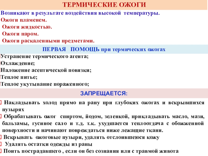 ПЕРВАЯ ПОМОЩЬ при термических ожогах