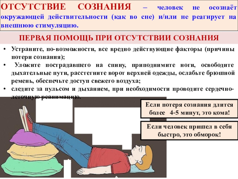 ПЕРВАЯ ПОМОЩЬ ПРИ ОТСУТСТВИИ СОЗНАНИЯ