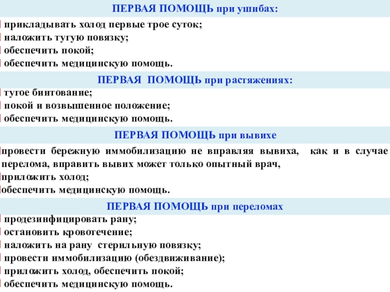 ПЕРВАЯ ПОМОЩЬ при переломах