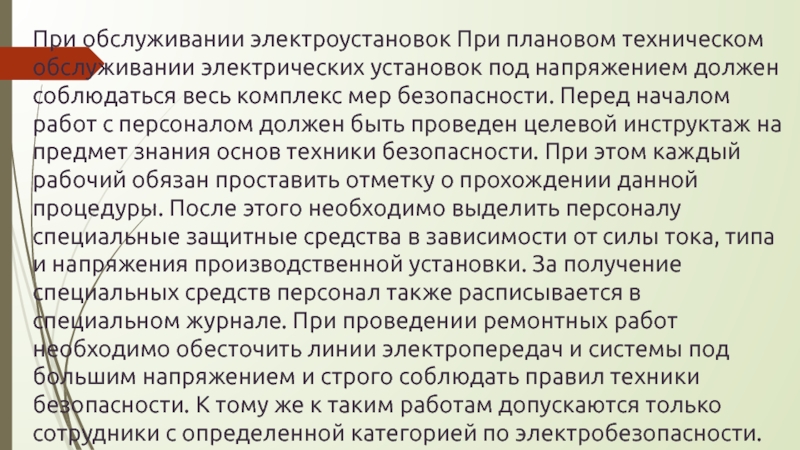 Слайд 7При обслуживании электроустановок При плановом техническом обслуживании электрических установок под напряжением