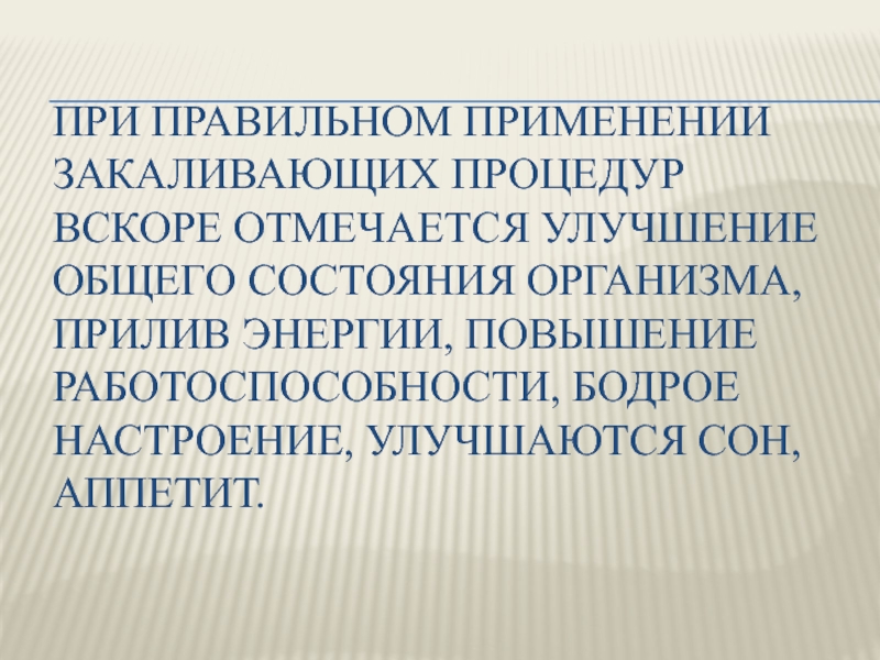 Слайд 13При правильном применении закаливающих процедур вскоре отмечается улучшение общего состояния организма,