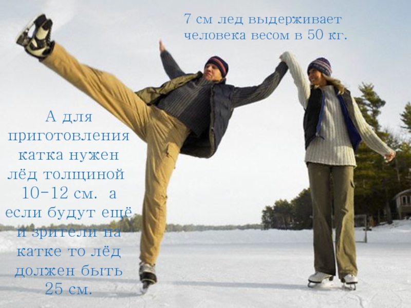 7 см лед выдерживает человека весом в 50 кг.