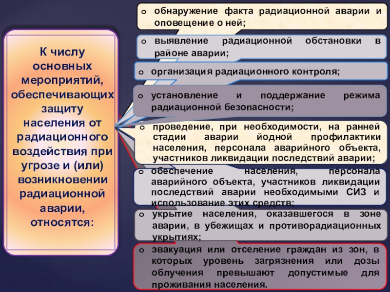 укрытие населения, оказавшегося в зоне аварии, в убежищах и противорадиационных укрытиях;