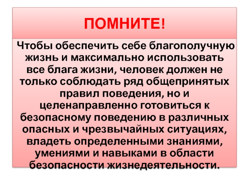 ПОМНИТЕ!Чтобы обеспечить себе благополучную жизнь и максимально использовать все блага жизни, человек должен не только соблюдать ряд