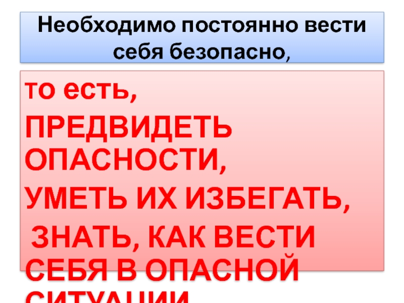 Слайд 7Необходимо постоянно вести себя безопасно,