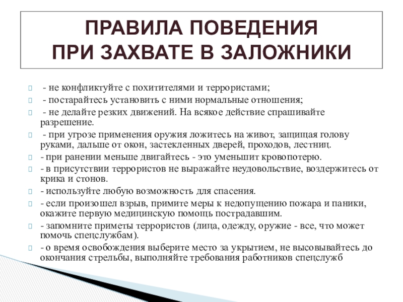ПРИ ЗАХВАТЕ В ЗАЛОЖНИКИ
