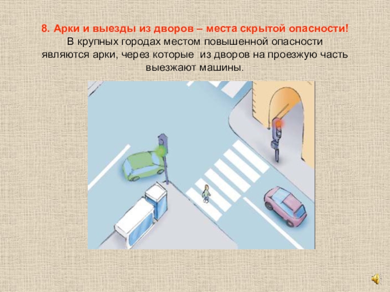 Слайд 268. Арки и выезды из дворов – места скрытой опасности!