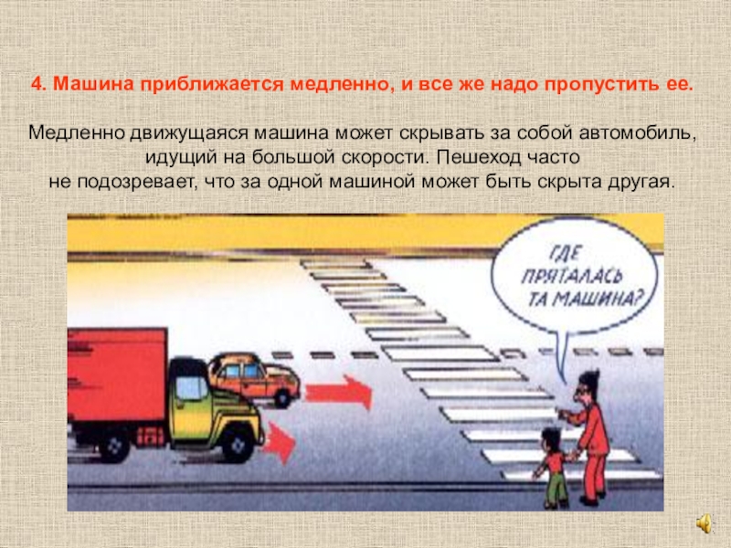 Слайд 214. Машина приближается медленно, и все же надо пропустить ее.