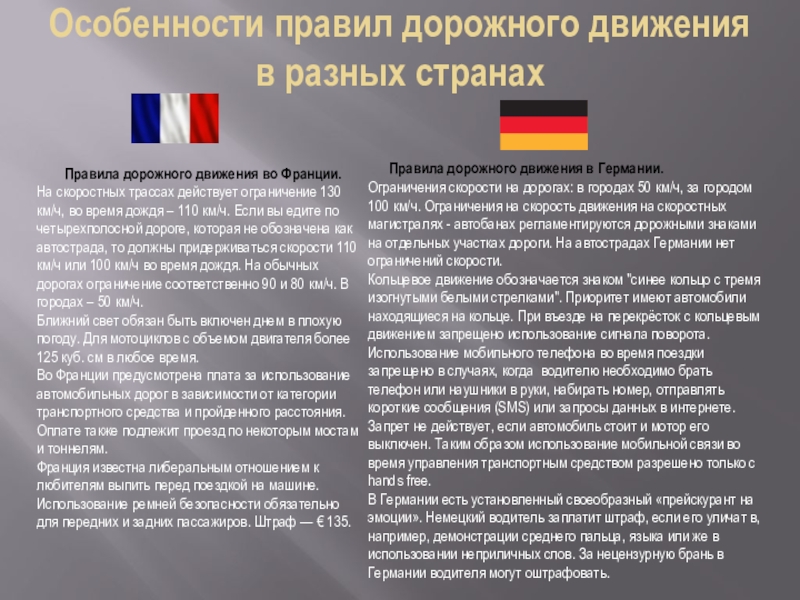 В Германии есть установленный своеобразный «прейскурант на эмоции». Немецкий водитель заплатит штраф, если его уличат в, например, демонстрации среднего пальца, языка или же в использовании неприличных слов. За нецензурную брань в Германии водителя могут оштрафовать.