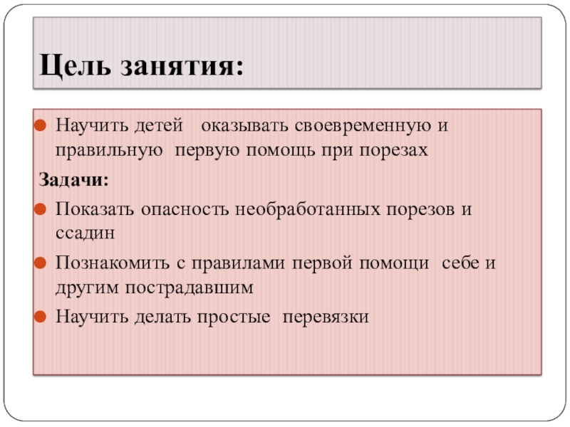 Познакомить с правилами первой помощи себе и другим пострадавшим