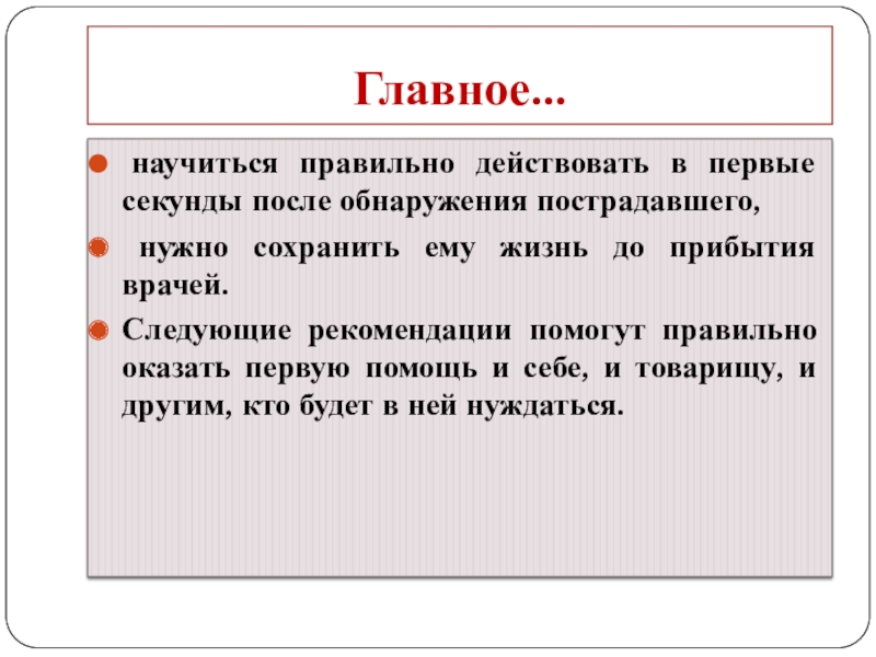Следующие рекомендации помогут правильно оказать первую помощь и себе, и товарищу, и другим, кто будет в ней нуждаться.