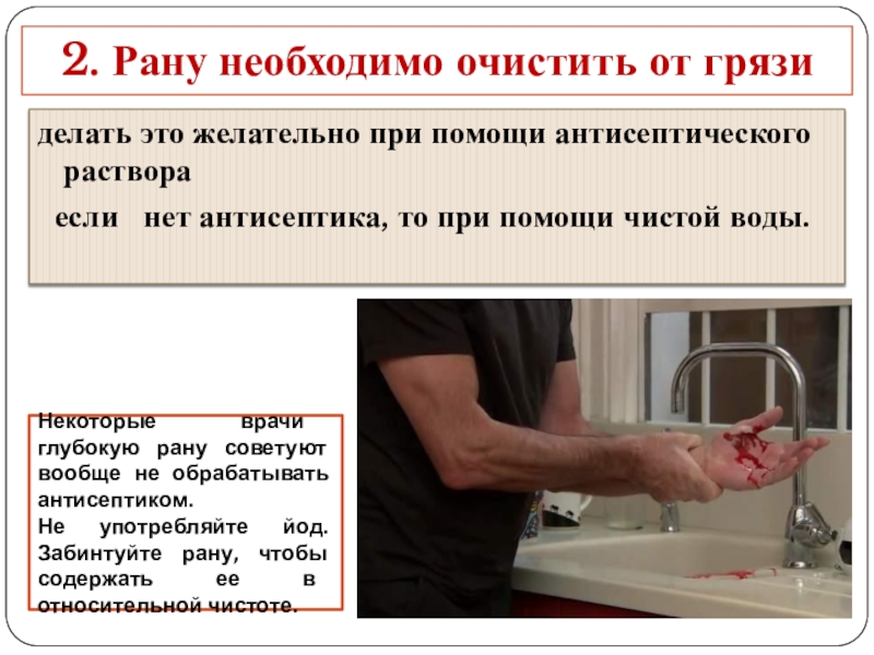 Некоторые врачи глубокую рану советуют вообще не обрабатывать антисептиком.