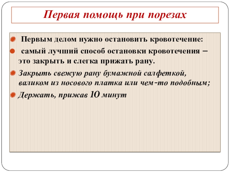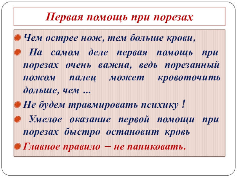 первая помощь при порезах - http://zdr.ru/articles/pervaja-pomoschj-pri-porezax
