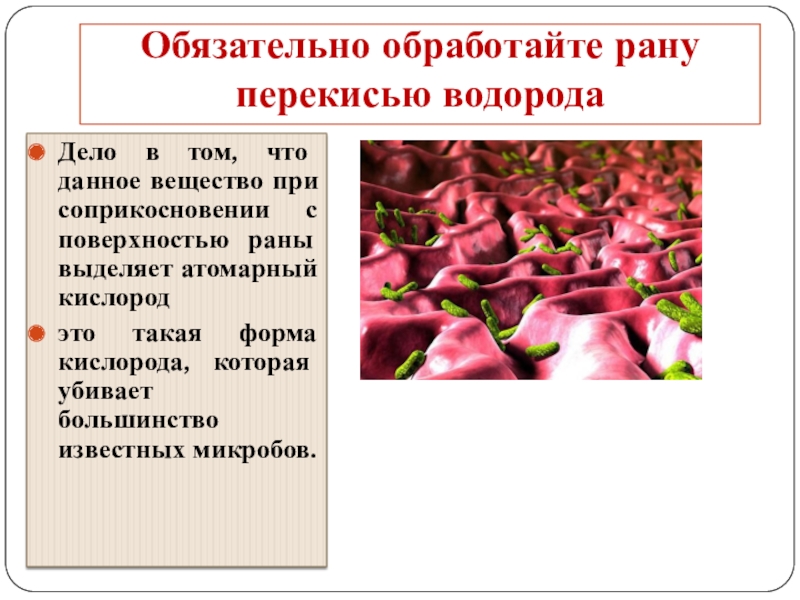 Слайд 13Обязательно обработайте рану перекисью водорода