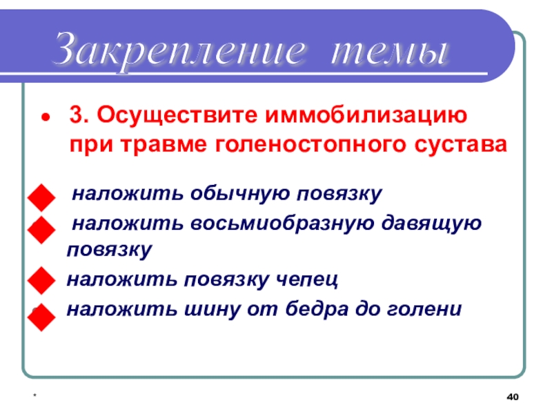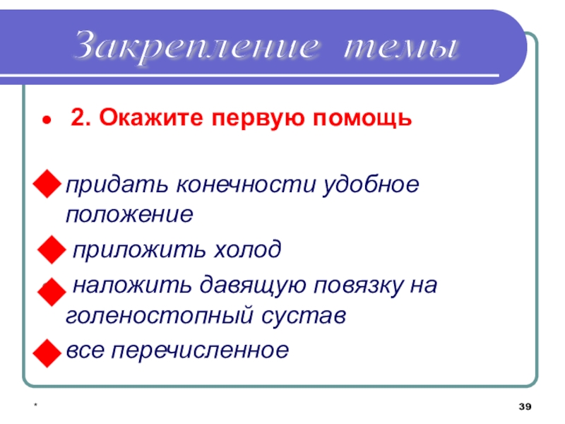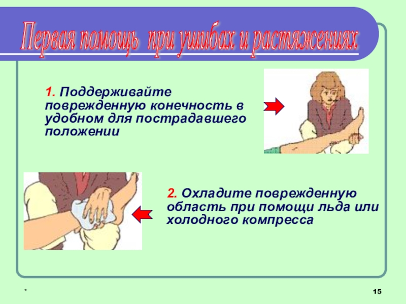 4. Приподнимите и зафиксируёте поврежденную конечность, создайте покой.