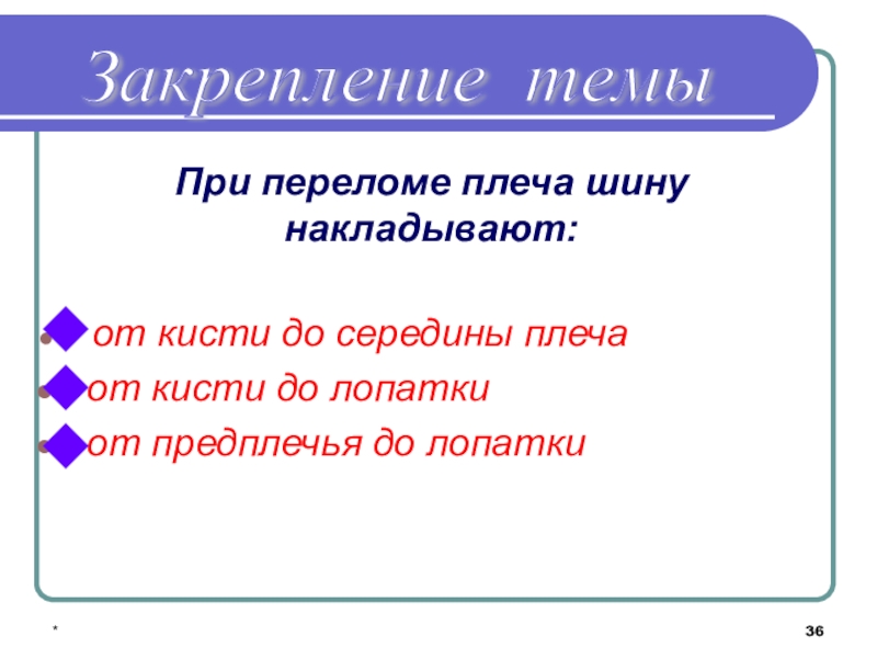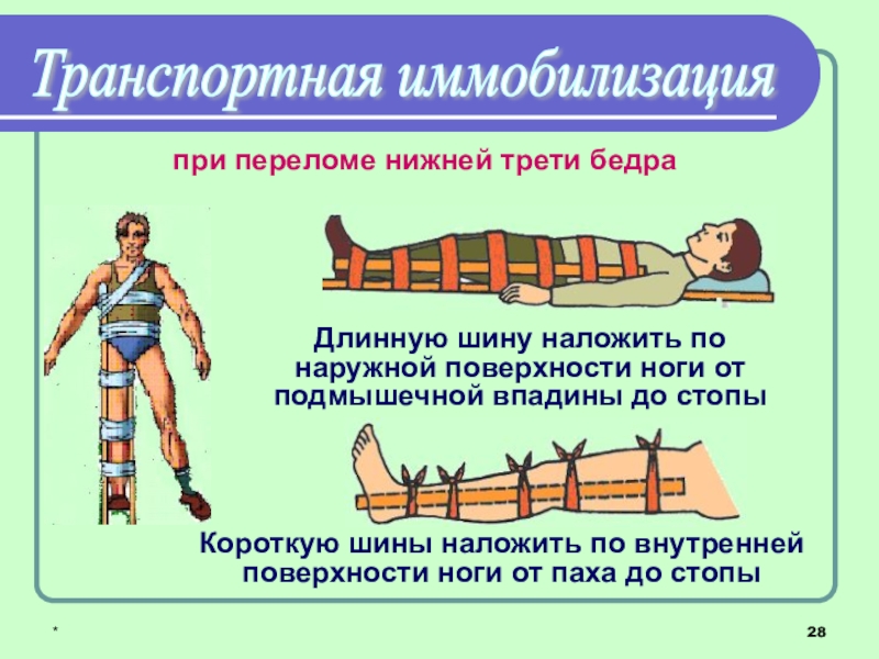 Короткую шины наложить по внутренней поверхности ноги от паха до стопы
