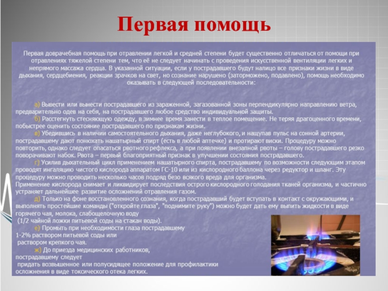 Презентация, доклад на тему Первая помощь при отравлении угарным газом
