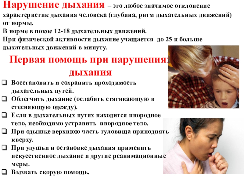 При удушьи и остановке дыхания применить искусственное дыхание и другие реанимационные меры.