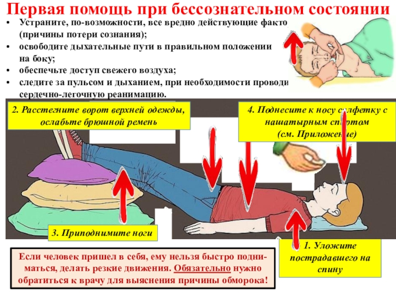 Устраните, по-возможности, все вредно действующие факторы (причины потери сознания);