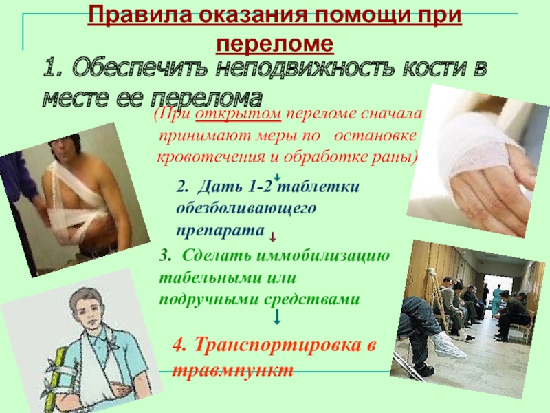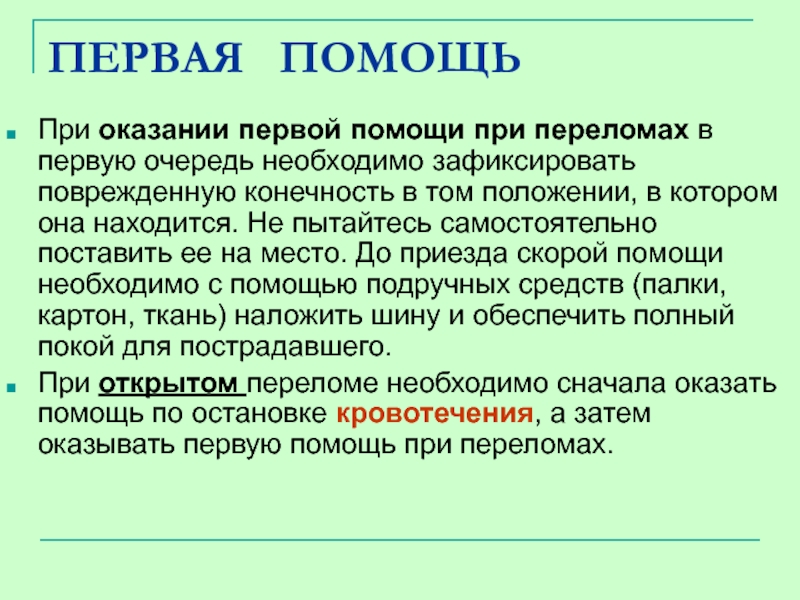 Правила оказания помощи при переломе