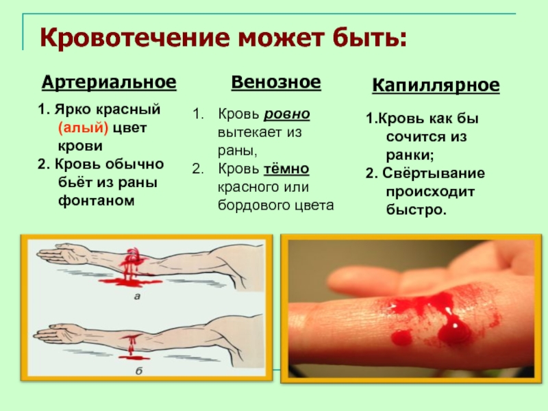 1.Кровь как бы сочится из ранки;