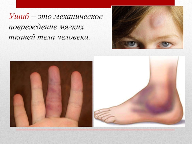 Слайд 5Ушиб – это механическое повреждение мягких тканей тела человека.