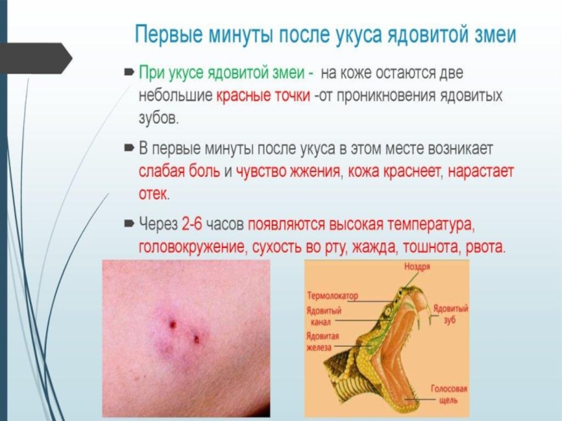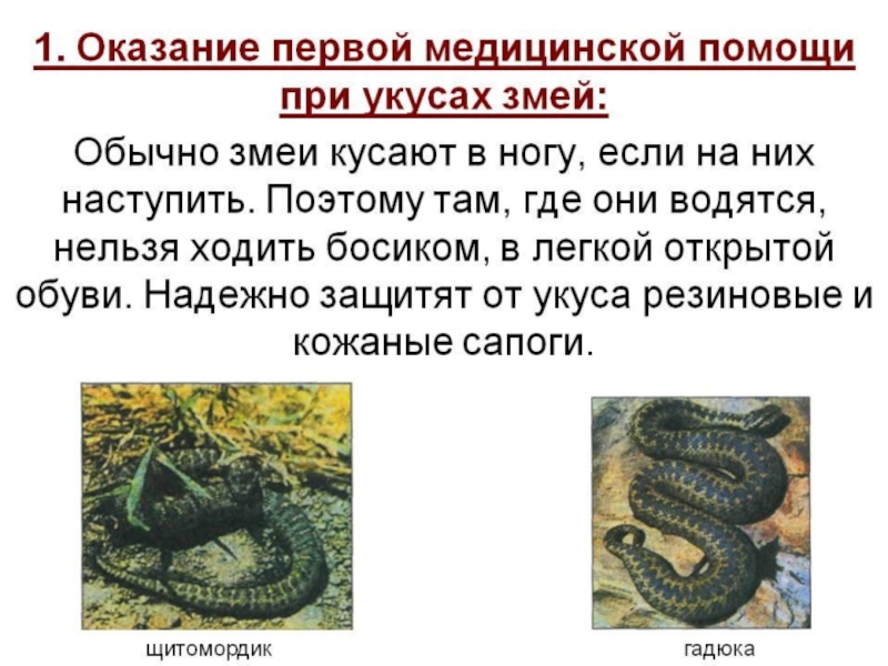 Первая помощь при укусах змеи ОБЖ
