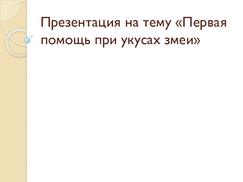 Презентация на тему «Первая помощь при укусах змеи»