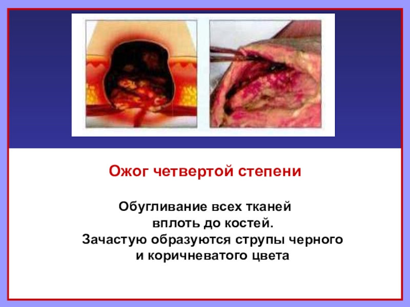 (фасций, сухожилий, мышц, кости и т. д.), обугливание