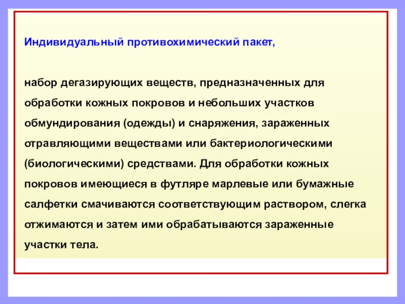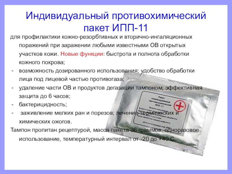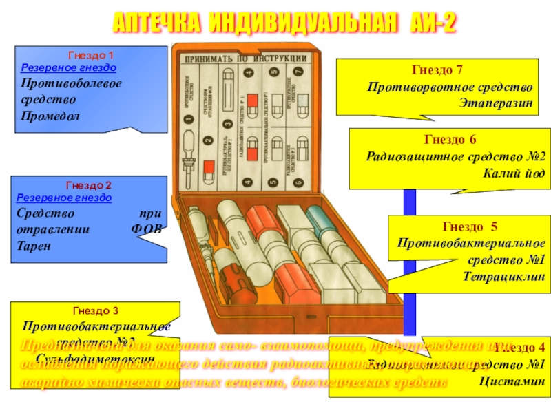 Предназначена для оказания само- взаимопомощи, предупреждения или ослабления поражающего действия радиоактивных, отравляющих, аварийно химически опасных веществ, биологических средств