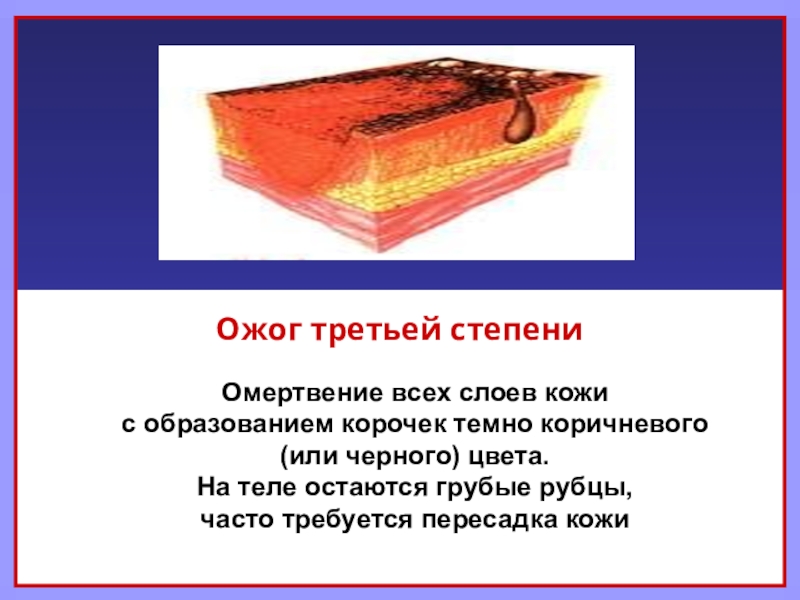 III степень - некроз (омертвение) всех слоев кожи и подкожной клетчатки;