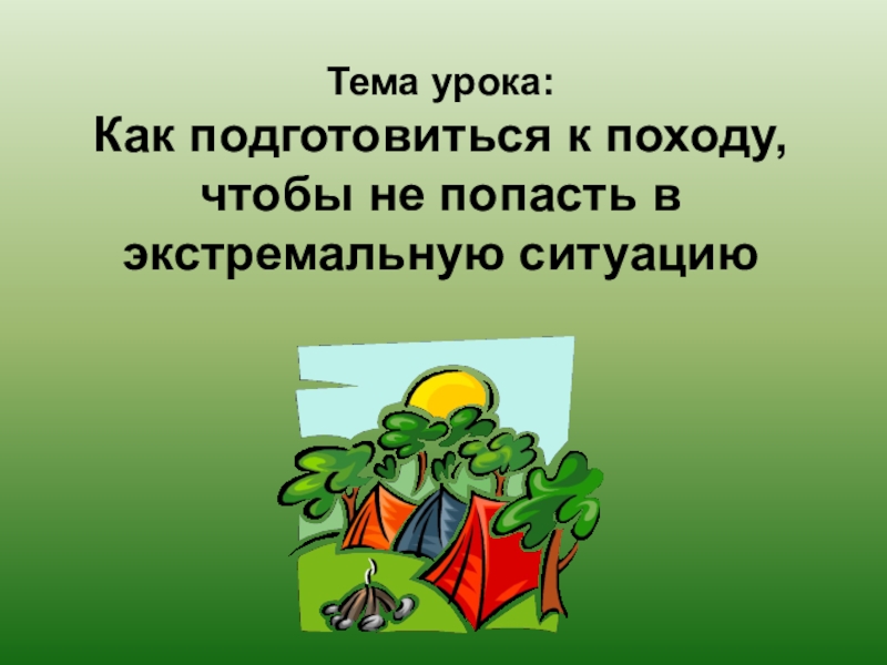 Слайд 3Тема урока: Как подготовиться к походу, чтобы не попасть в экстремальную ситуацию