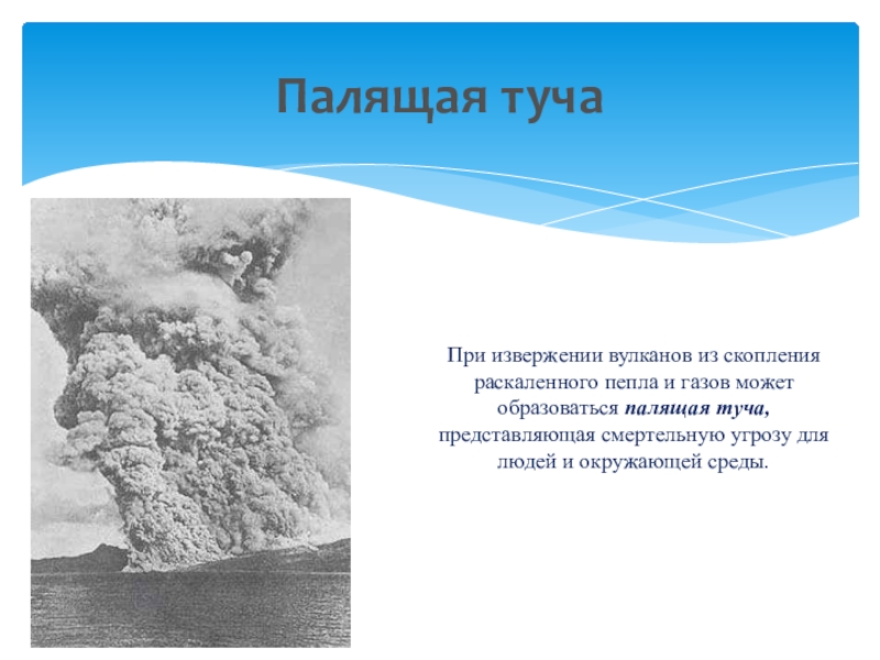 Наиболее опасными явлениями для человека и окружающей среды при извержении вулканов являются образующиеся при этом продукты извержений вулканов. Они бывают жидкими, твердыми и газообразными.