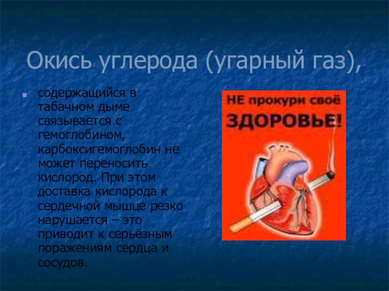 содержащийся в табачном дыме связывается с гемоглобином, карбоксигемоглобин