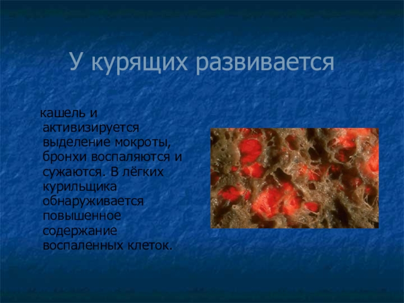 и сужаются. В лёгких курильщика обнаруживается повышенное содержание воспаленных клеток.