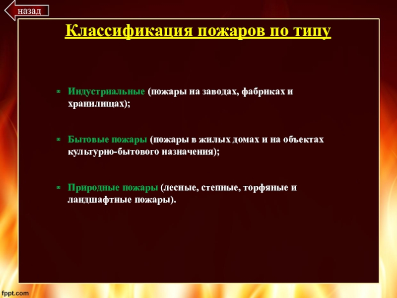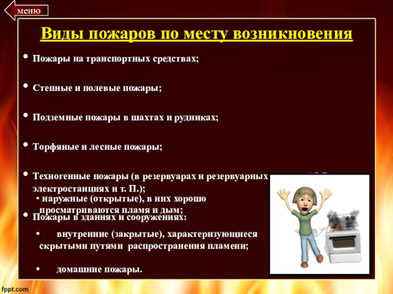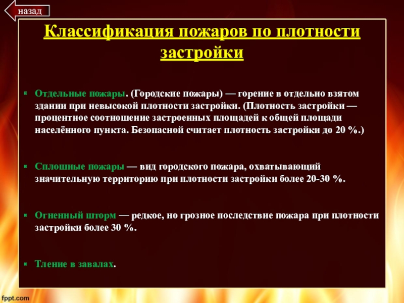 По способу распределения пожарной нагрузки помещения делятся на два класса: