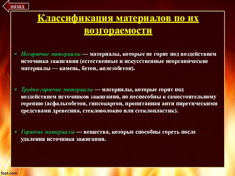 Скорость выгорания твердых материалов на пожаре составляет от 5-10-3 до 2-10—2 кг/(м2-с).Максимальная скорость выгорания при свободном доступе воздуха наблюдается при плотности распределения пожарной нагрузки 0,25—0,3.