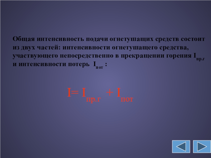 средства, участвующего непосредственно в прекращении горения Iпр.г и интенсивности потерь Iпот :