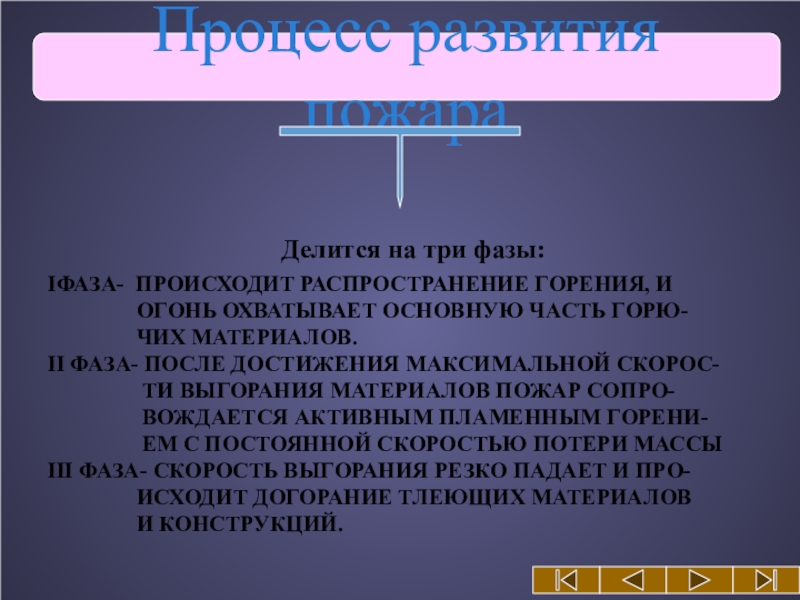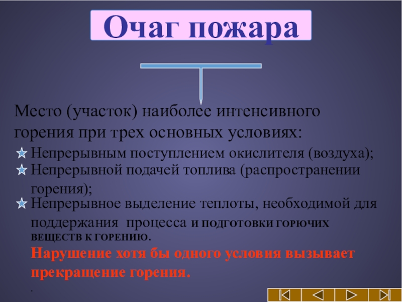 ПОЖАР И ЕГО РАЗВИТИЕ . УСЛОВИЯ ПРЕКРАЩЕНИЯ ГОРЕНИЯ.
