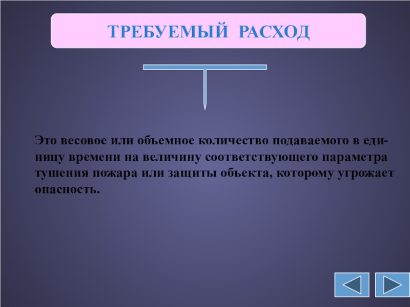 единицу времени на величину соответствующего параметра тушения пожара или защиты объекта, которому угрожает опасность. Эту величину измеряют теми же единицами, что и требуемый расход.
