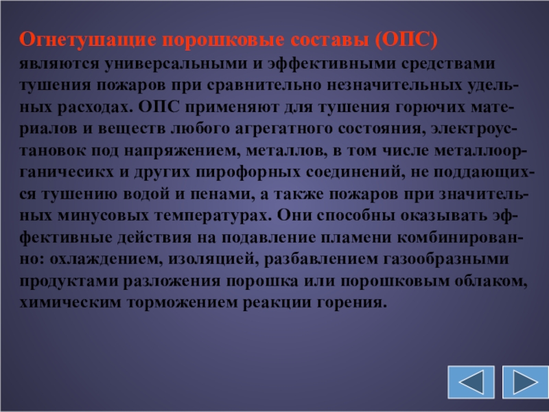 б) горящих материалов нанесением на их поверхность легкоиспаряющихся или разлагающихся негорючих веществ;
