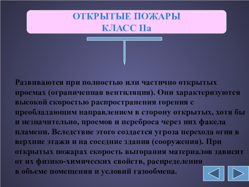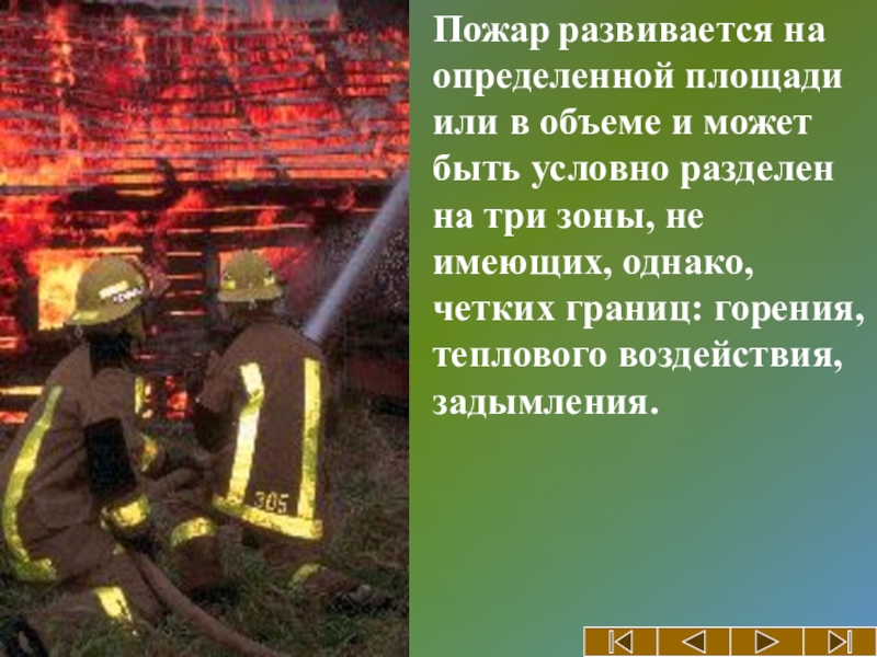 Слайд 9Пожар развивается на определенной площади или в объеме и может быть