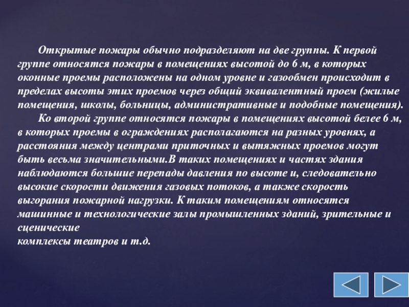 процессы термического разложения твер-дых горючих материалов или испарения жидкостей, горения газов и паров в объеме диффуз-ного факела пламени. Зона горе-ния может ограничиваться ограждениями здания , стенками различных технологических ус-тановок, аппаратов, резервуаров и т.д.