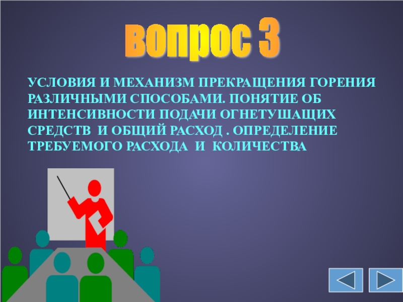 УСЛОВИЯ И МЕХАНИЗМ ПРЕКРАЩЕНИЯ ГОРЕНИЯ РАЗЛИЧНЫМИ СПОСОБАМИ. ПОНЯТИЕ ОБ ИНТЕНСИВНОСТИ ПОДАЧИ ОГНЕТУШАЩИХ СРЕДСТВ И ОБЩИЙ РАСХОД . ОПРЕДЕЛЕНИЕ ТРЕБУЕМОГО РАСХОДА И КОЛИЧЕСТВА