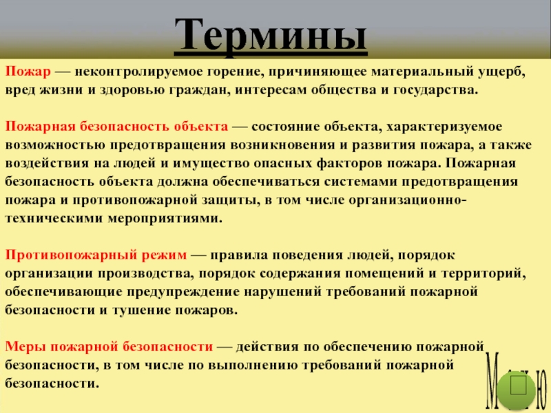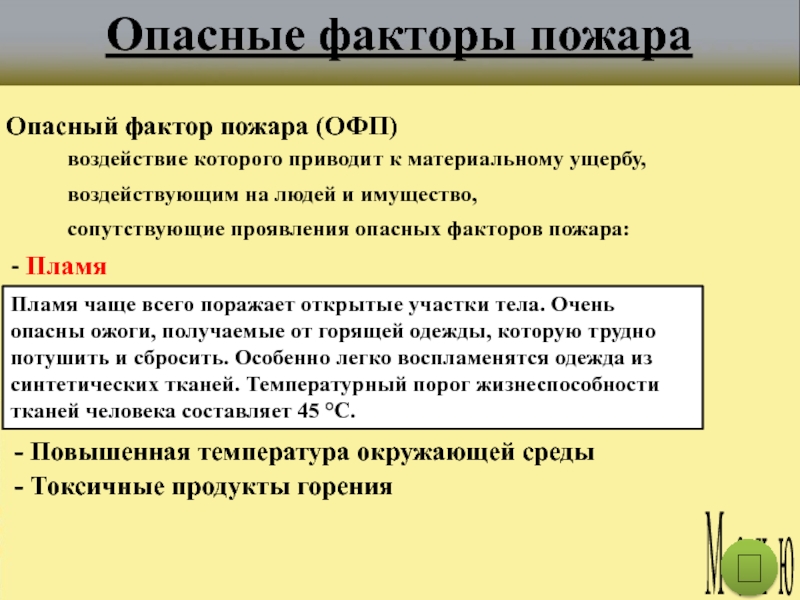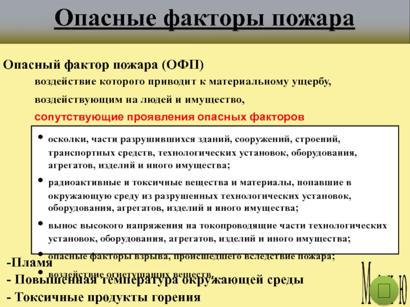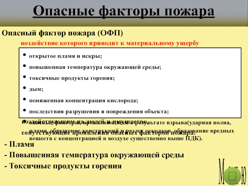 опасные факторы взрыва, происшедшего вследствие пожара;