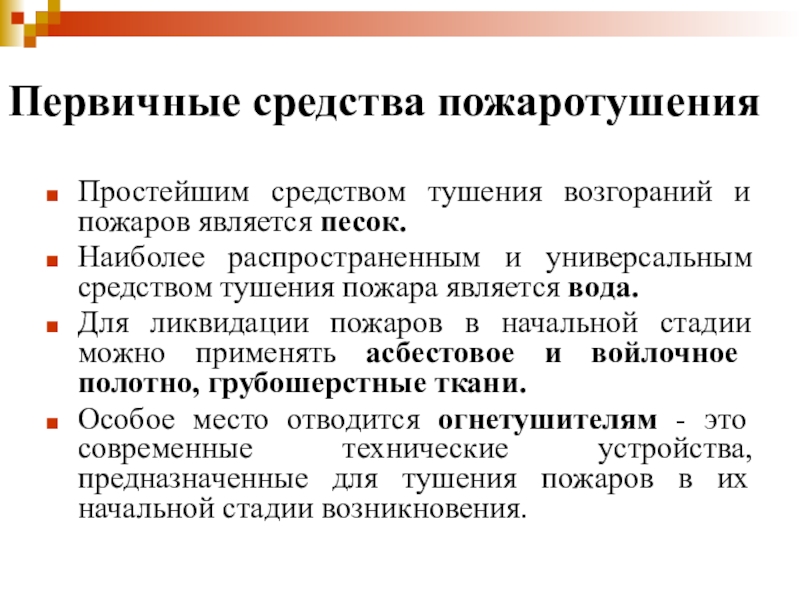 К современным техническим средствам пожаротушения относятся средства пожарной