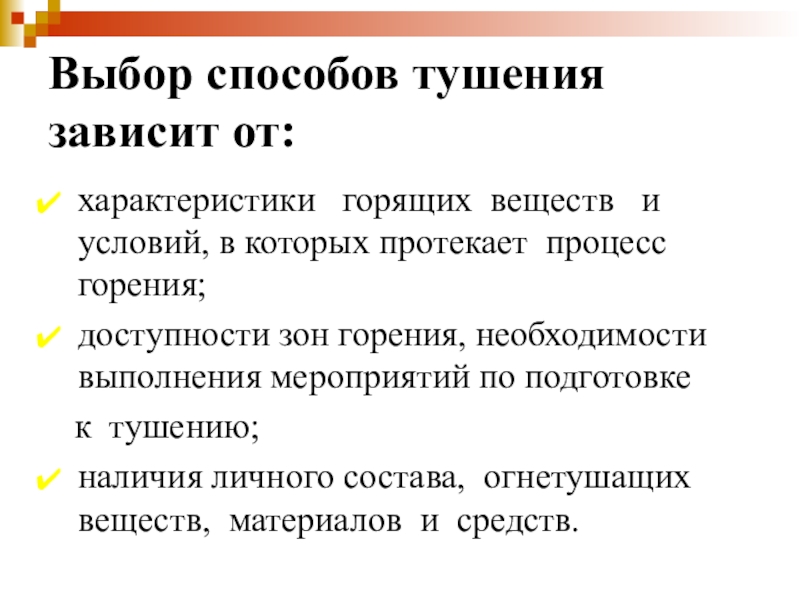 доступности зон горения, необходимости выполнения мероприятий по подготовке